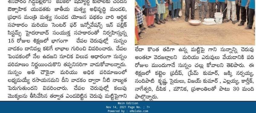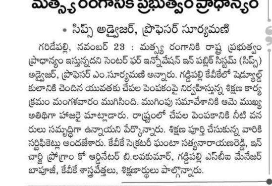 Entrepreneurship Development Programs to SC Communities in Fisheries Sector of Telangana State