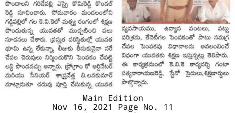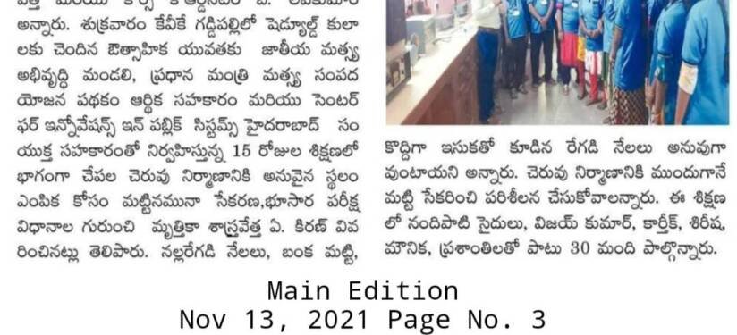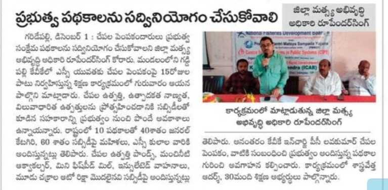 Entrepreneurship Development Programs to SC Communities in Fisheries Sector of Telangana State